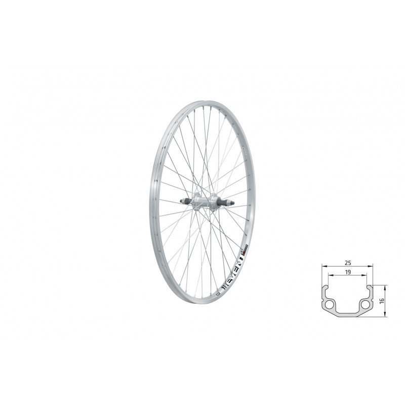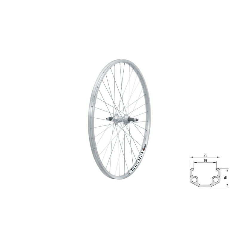 Zapletené koleso KLS EVENT V-brake R je určené pre cenovo dostupné bicykle s jednovrstvovým ráfikom, s V-brzdami, upínaním pomocou osky s maticou, a nábojom s voľnobehom.