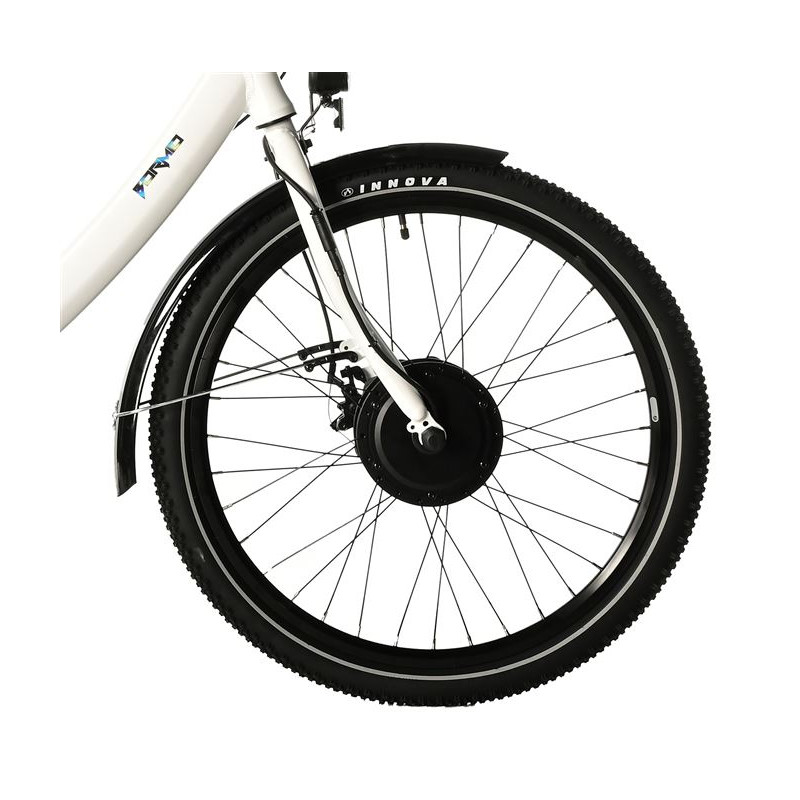 Přední elektromotor BAFANG vyniká plynulým a tichým chodem. Nabízí nominální výkon 250 W, max. výkon 350 W a kroutící moment 45 Nm.