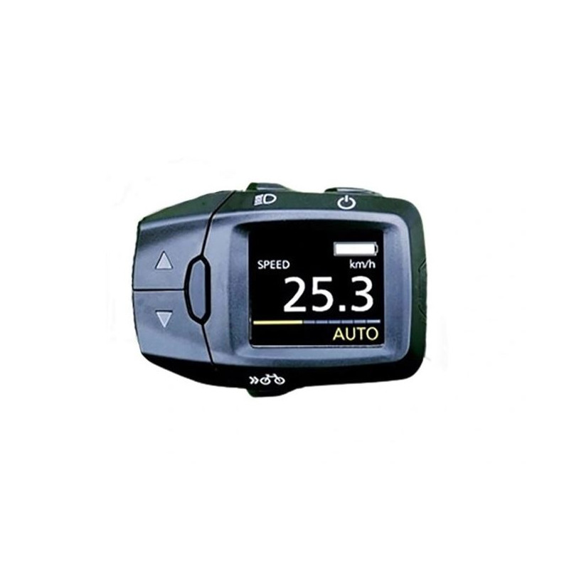 - funkce: rychloměr, maximální rychlost, průměrná rychlost, počítadlo kilometrů, zbývající vzdálenost jízdy, ujetá vzdálenost, asistenční režim, indikace výkonu asistenta, stav nabití baterie, možnost volby 10 jazyků, Bluetooth 5.0.