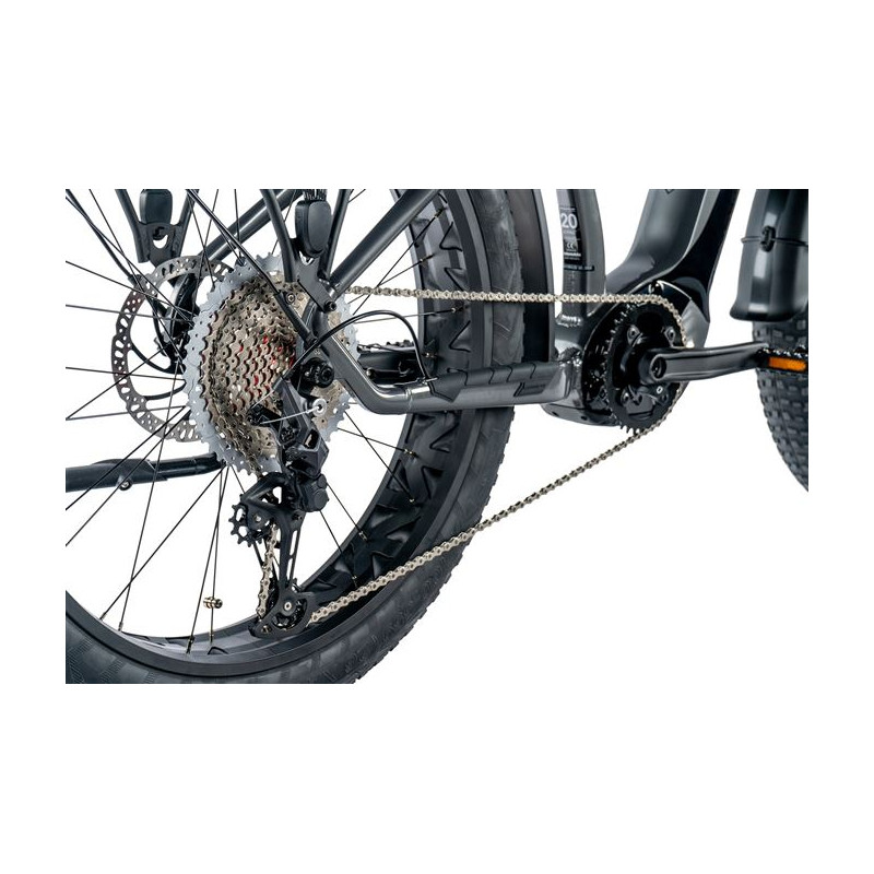 Široké pneumatiky nabízí lepší přilnavost a stabilitu na měkkých a náročných površích. Elektrický FAT bike BRASA má vynikající trakci na sněhu a písku se schopností snadno překonávat překážky a nerovnosti.