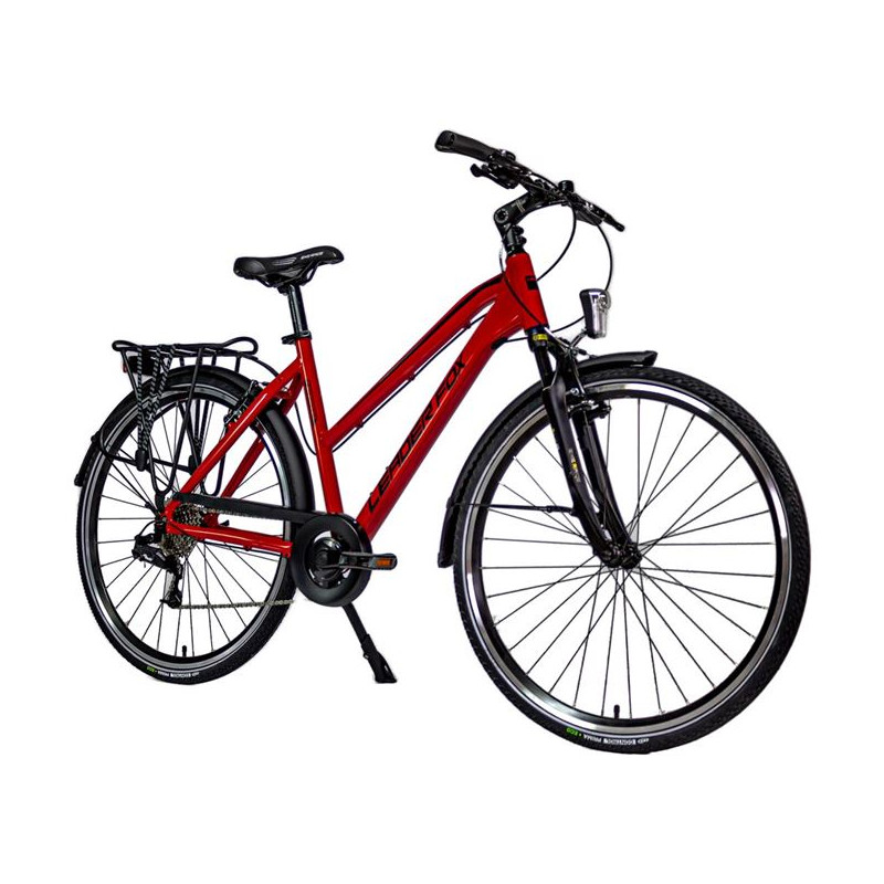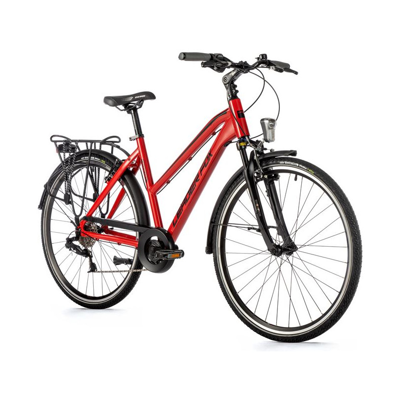 Dámské trekingové kolo Leader Fox FERRARA 28" v hliníkovém rámu, s blatníky a bateriovým LED osvětlením. Užijte si pohodlné cestování po městě nebo odpolední výlety po cyklostezkách
