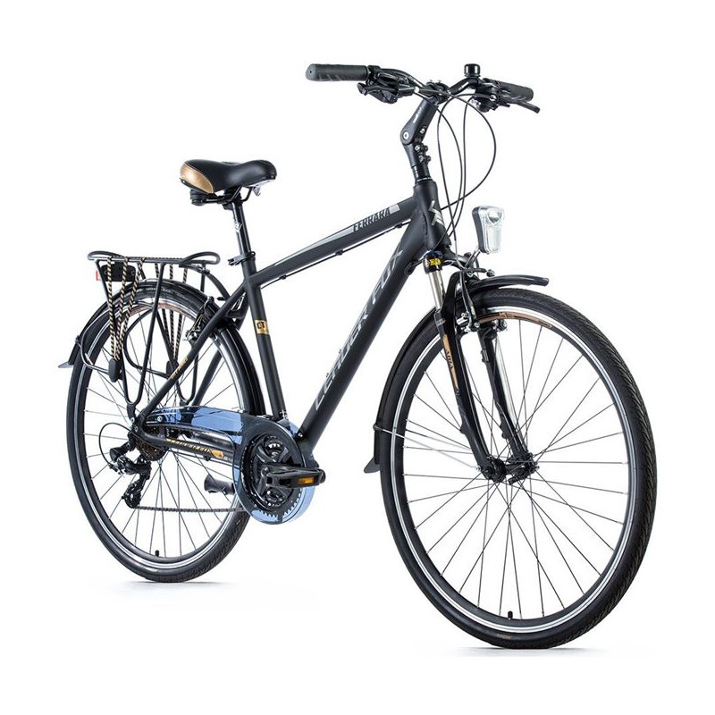 Pánské trekingové kolo Leader Fox FERRARA 28" v hliníkovém rámu, s blatníky a bateriovým LED osvětlením. Ideální kolo pro dopravu po městě nebo na krátké výlety po cyklostezkách.