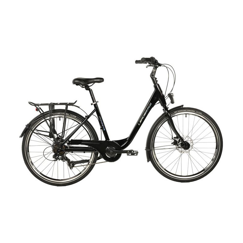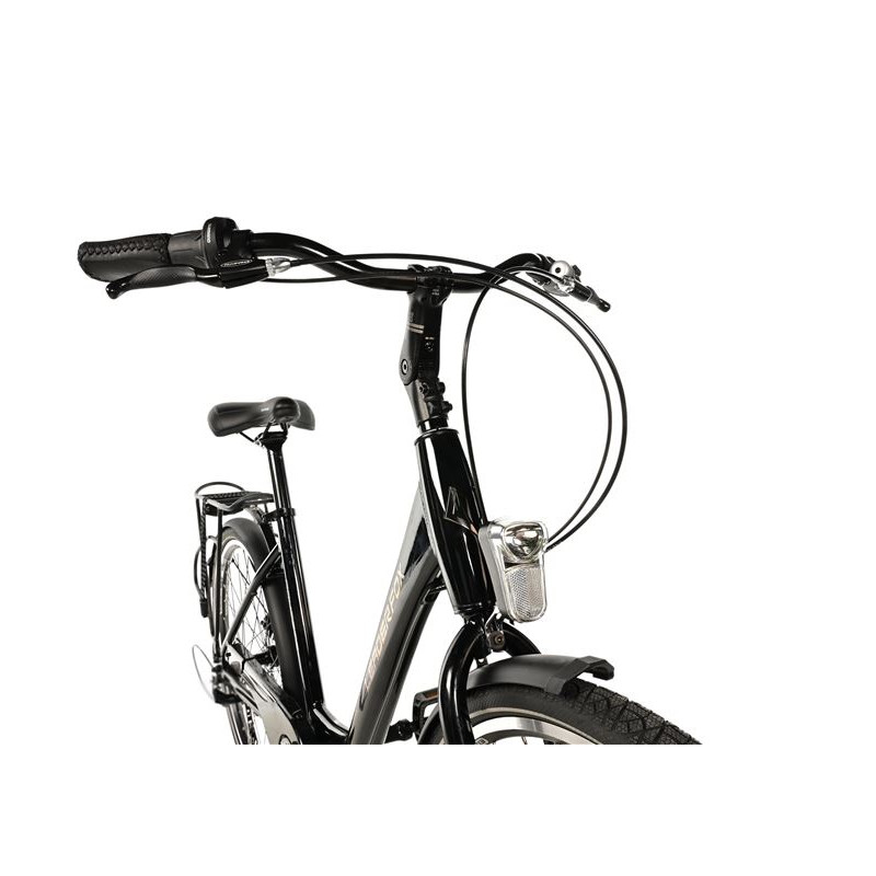 Městské kolo Leader Fox DOMESTA 26" s hliníkovým rámem, blatníky a bateriovým LED osvětlením. Elegantní městský design se snadným nastupováním.