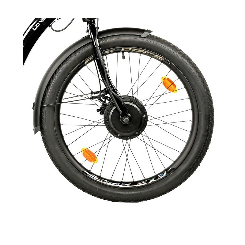 Přední elektromotor BAFANG vyniká plynulým a tichým chodem. Nabízí nominální výkon 250 W, max. výkon 350 W a kroutící moment 45 Nm.